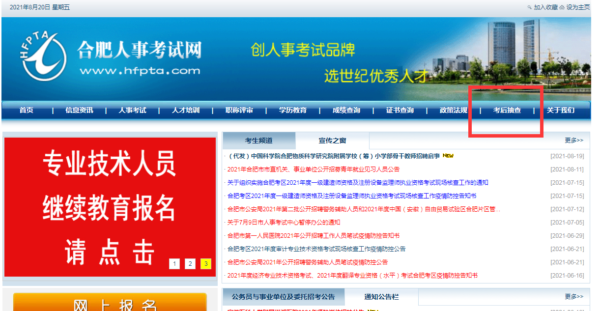 為切實加強事中事后監(jiān)管,確保告知承諾制試點工作順利推進,根據(jù)省人力資源社會保障廳《關(guān)于專業(yè)技術(shù)人員資格考試告知承諾制試點工作有關(guān)事宜的通知》(皖人社秘〔2020〕41號)要求,現(xiàn)就2021年度合肥考區(qū)二級造價工程師職業(yè)資格考試成績合格人員考后抽查工作通知如下: