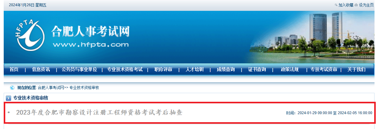 抽查工作采取線上審核方式進(jìn)行。考試成績合格被抽查人員(名單見附件5)需在2024年1月29日至2月5日登錄合肥人事考試網(wǎng)(www.hfpta.com),按要求上傳相關(guān)證明材料。步驟如下: