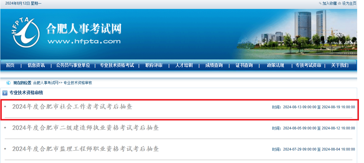 抽查工作采取線上審核方式進(jìn)行?荚嚦煽(jī)合格者(名單見(jiàn)附件5)需在8月13日至8月19日登錄合肥人事考試網(wǎng)(www.hfpta.com),按要求上傳相關(guān)證明材料。步驟如下:
