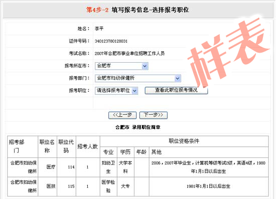 第四-2步,填寫報考信息-選擇報考職位。